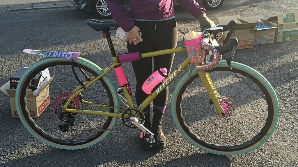 RITCHEY!しかもアウトバックのオールペン仕様です!すごい!全てのパーツ、ボルトの一本一本までこだわり抜いた色使い。ハブと軽量カセットのピンクがとても可愛い!ベスト3全員が女性となったのですが、やはり色使いがうまい!バランスが良くてコーディネート力が高く、そこがこのグラベルロードの世界にベストマッチしている気がします。